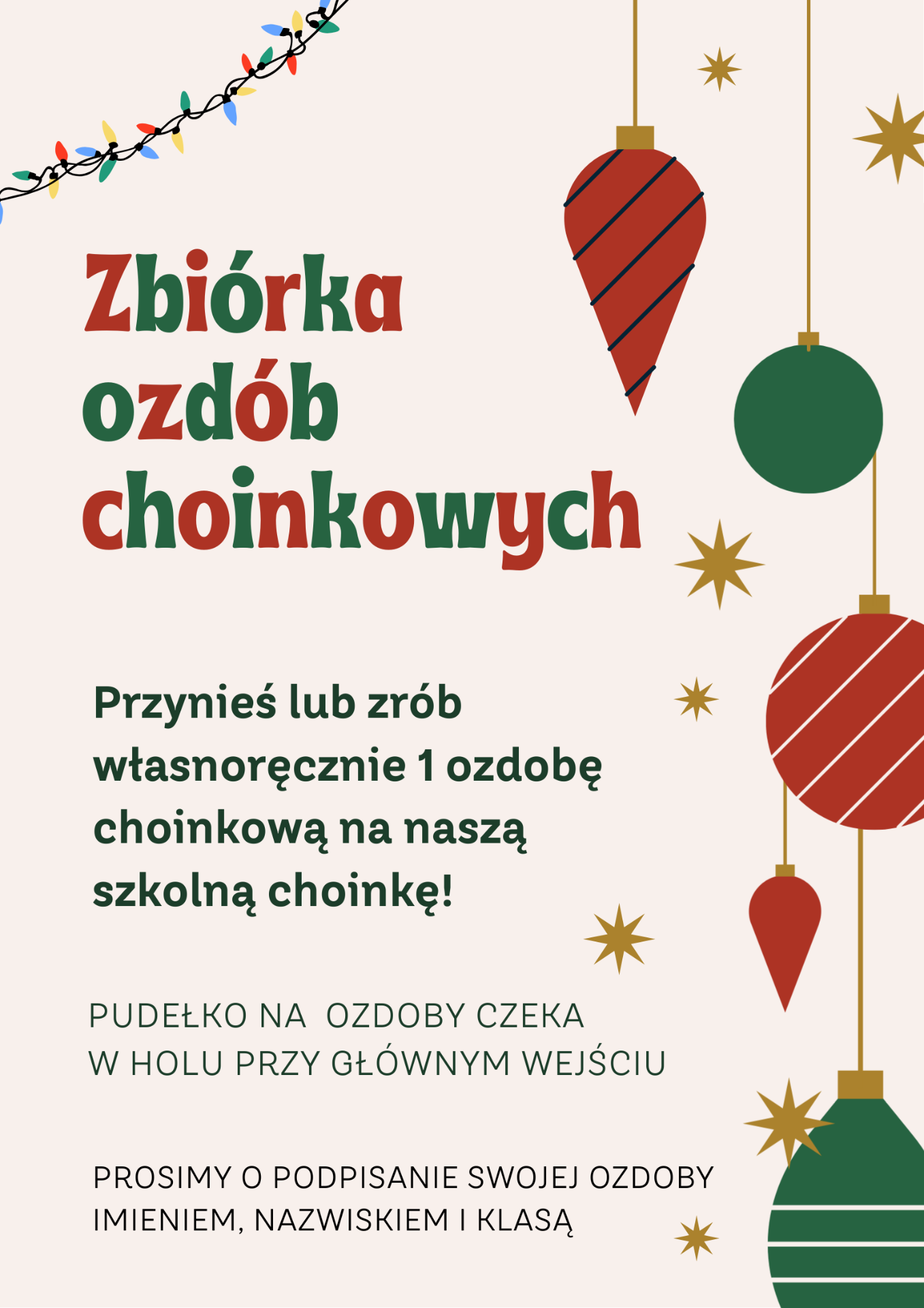 Ubieramy szkolne choinki! Drodzy uczniowie z okazji zbliżających się świąt zachęcamy do przynoszenia ozdób choinkowych. A do zaproszenia na Wigilię tytuł: Wspólne kolędowanie Galeria zdjęć Powiązane wiadomości Spot Jubileuszu! Kolejny sukces literacki Uczniowie naszej szkoły... Poszukujemy wielopokoleniowych rodzin Absolwentów Ubieramy szkolne choinki! CHOPIN ma 100 lat Poradnik bezpieczeństwa Drukuj Udostępnij Data dodania: 26.11.2025 Wyświetlono: 23 Aktualności